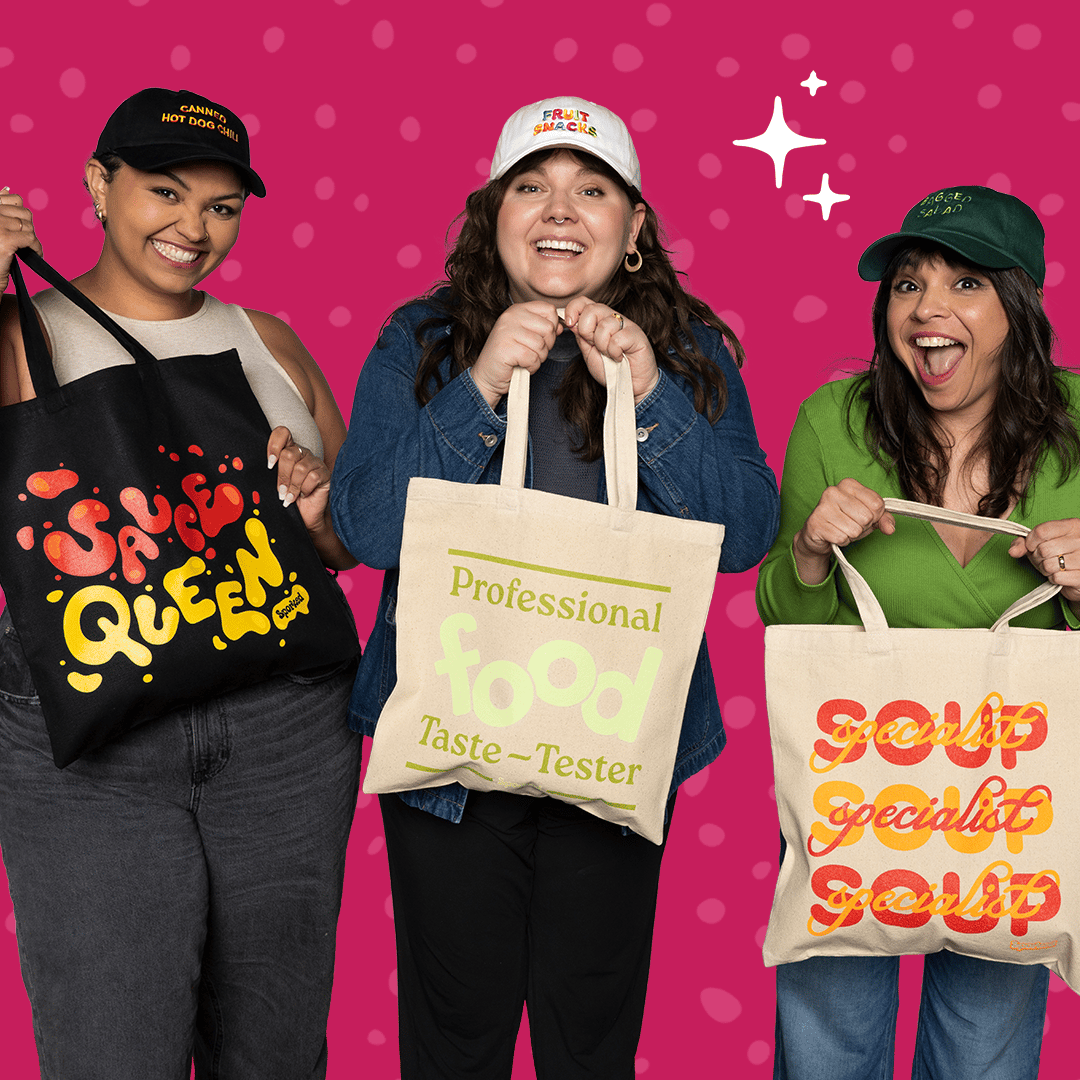 Get decked out like a professional taste tester and show your local grocery store you mean business with our collection of hats and grocery totes!